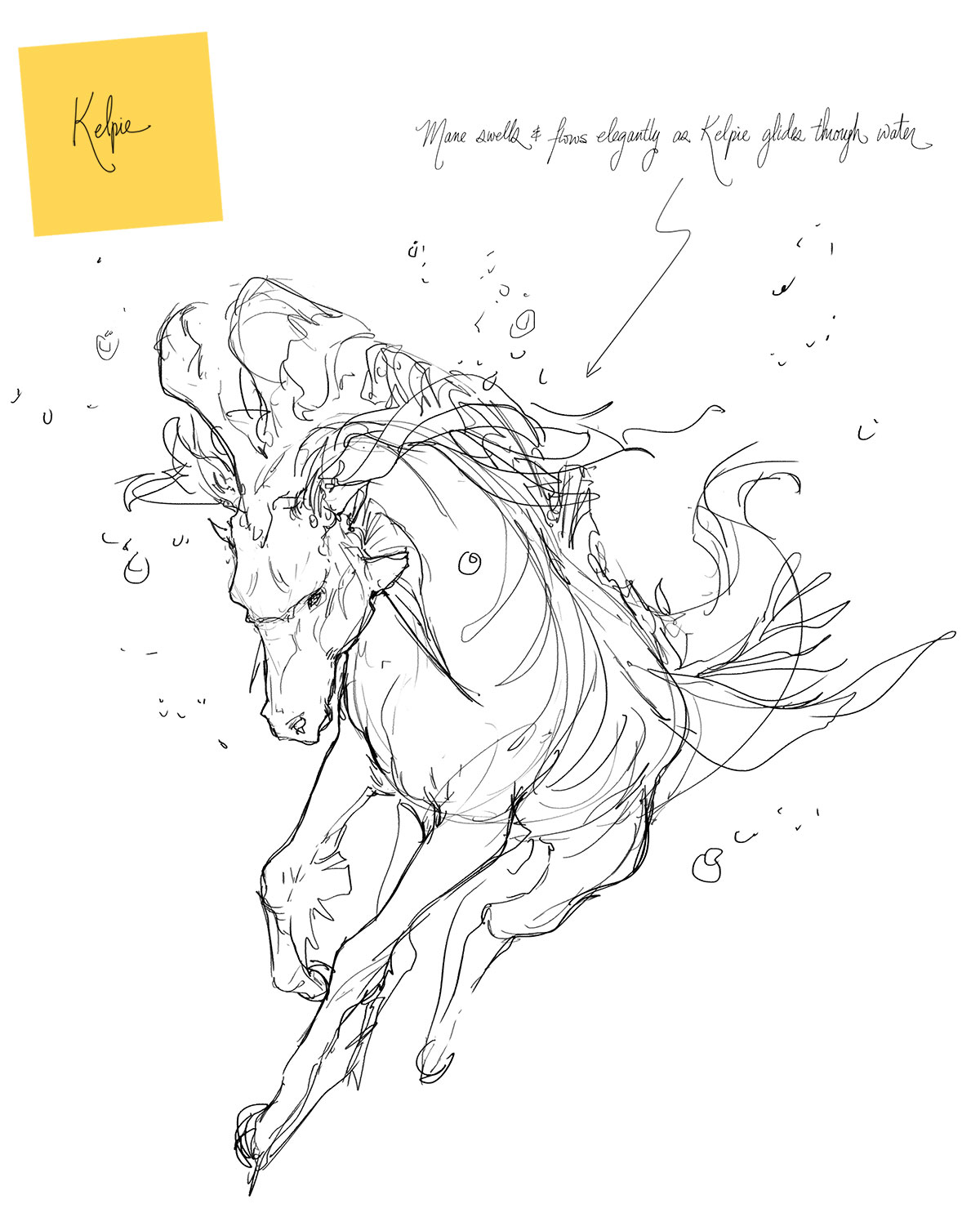 Concept Sketch / I was trying to imagine how to merge aspects of fish and horse anatomy.