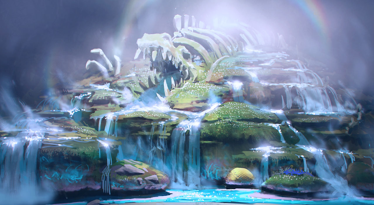 Concept Painting / The kids are washed out from inside the mountain and exit through the mouth of the skull.
