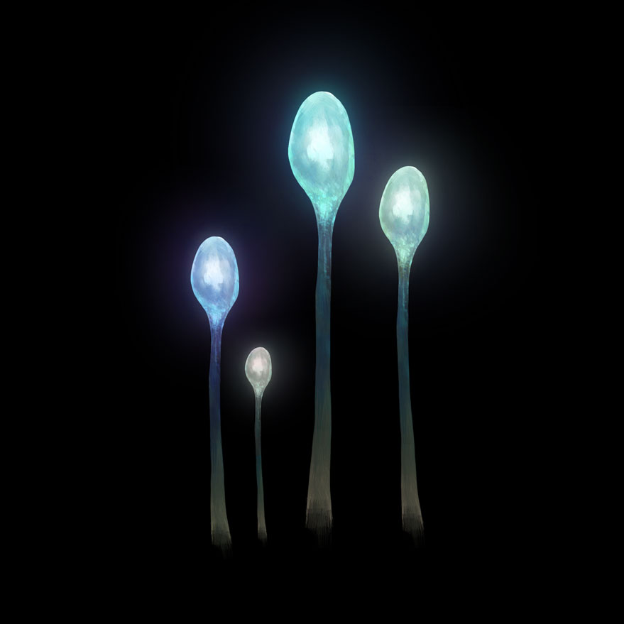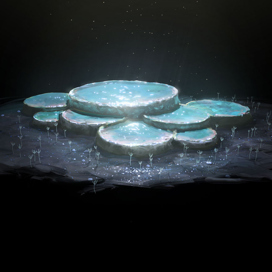 Covering the walls are colonies of bioluminescent life—giving the cave a calming, blue-green glow. The flora and fauna here resemble those from the deep sea as no sunlight reaches these caves.