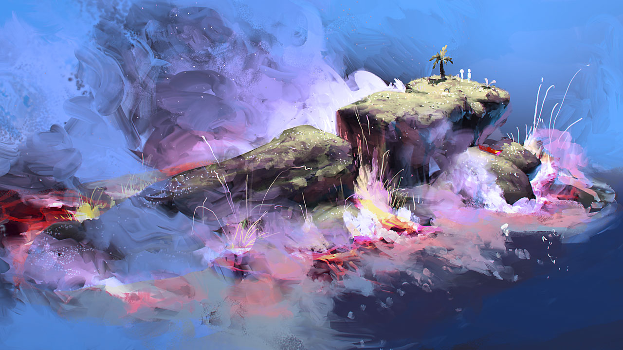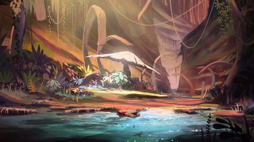 Concept Painting / To see if the assets visually work together, I’ll sometimes paint little vignettes of them to test if they harmonize.